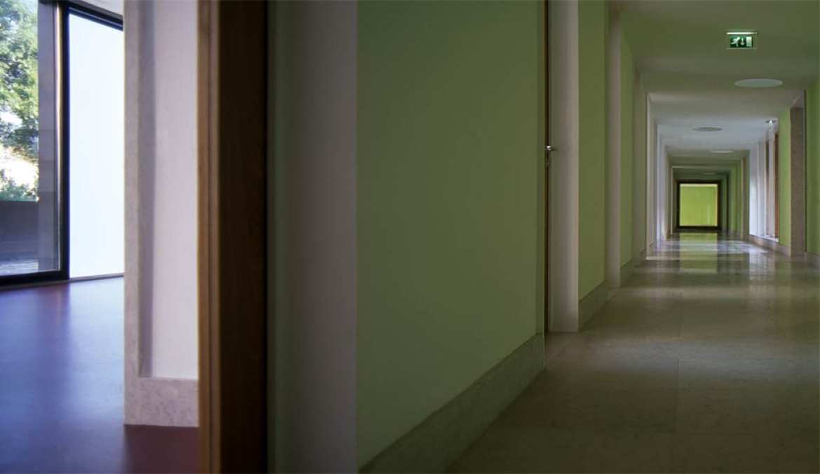 the spaces of the documentation and information centre are complementary to the military and civilian houses of the general secretariat of the presidency. the disposition of the construction allows the connection of all these services directly, and creates a courtyard that brings them together, operating in conjunction with the palace gardens. the centre is integrated as part of the hanging gardens. the ground floor e the offices, conference rooms, a library, archives, and a gym. the top floor is set by a restaurant.