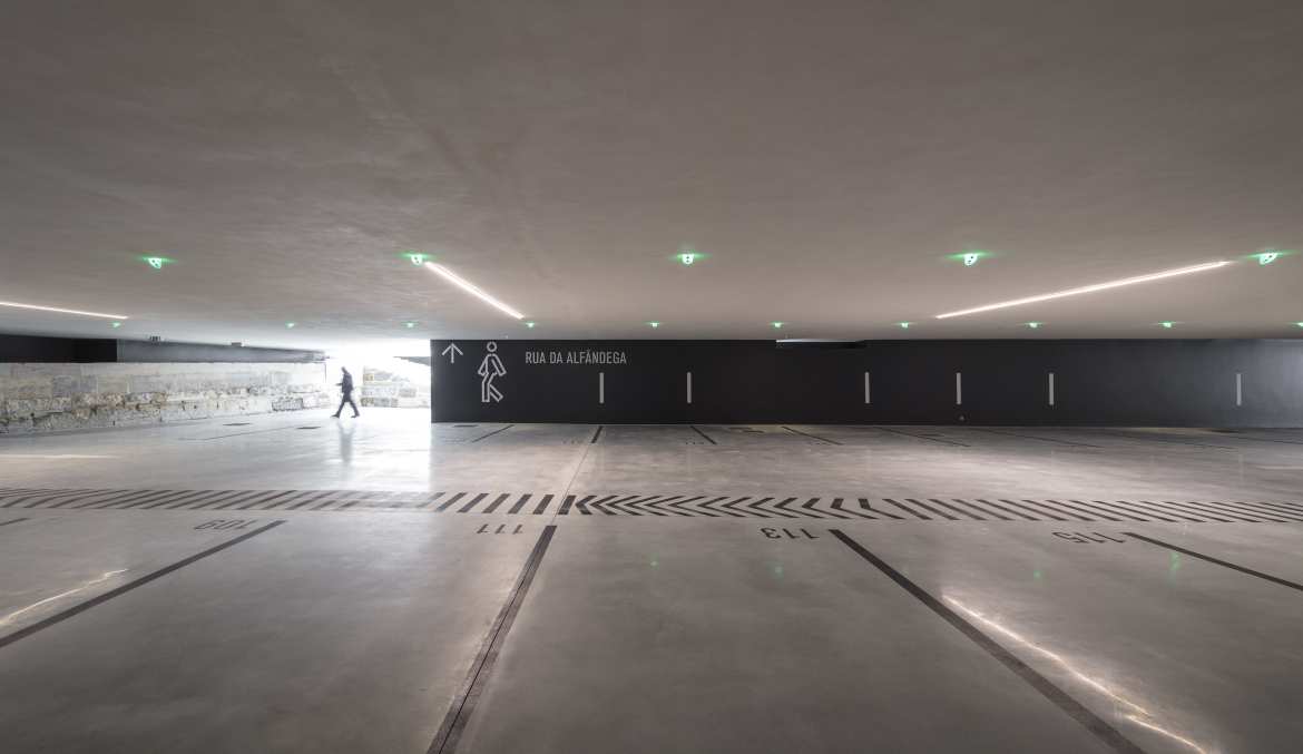 resuming the formulation of the ribeira das portas do mar and campo das cebolas as open fields — campi —, the new space does not deny the evidence of its various previous urban forms, assuming itself as a unified space that acknowledges its constituting parts and its different histories. it is materialised trough the deformation of the ground's level, by creating a stone clad plane, slightly tilted — an amphitheatre — tumed to the cathedral’s slope, supported by a wall that echoes those of the former ver-o-peso/ribeira Velha pier, plane that folds into a small podium that allows the gaze to stretch above the riverside thoroughfare and reach the dock and the river beyond. under this manipulated plane the car park is, literally, inserted, mimicking underground the tilted plane of the surface, limited by the exposed walls of the ver-o-peso pier. the park's semi-buried situation allows for easy non mechanical access, natural ventilation processed through the wall on the avenue’s side and through the patio next to the existing buildings, patio that also allows for the park's natural lighting. across the avenue, towards the river, the project was later expanded into the doca da marinha, reinforcing the public vocation of the riverfront with programatic use - the restaurant and the kiosks - and emphasising the campo das cebolas intention of openness to both the city and the river.