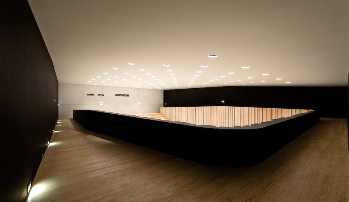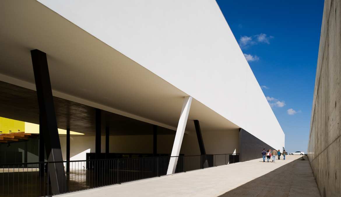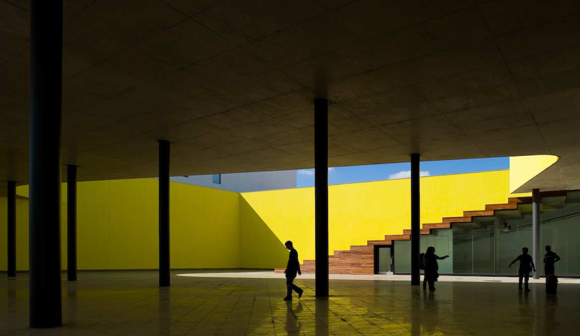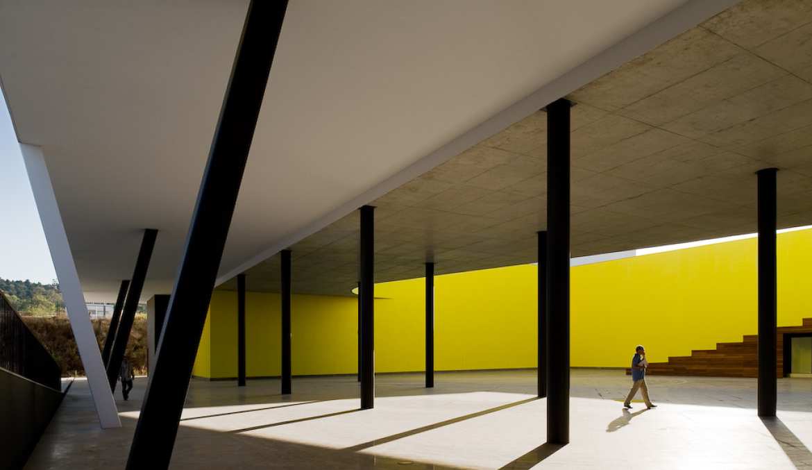 the building is organised around a large cloister plateau located in the university campus, providing an outdoor area where small concerts are improvised. to deal with the aggression of the acoustic environment, the building was studied to protect the school from noise due to its strong presence in the urban context. the north side of the volume is arranged in two levels, to provide an acoustic barrier to the cloister, while allowing for outdoor classes in the sun. the slope in the roof allows the creation of spaces of varying height, taking into account the particular specificities of each musical instrument. the school is organised in a spiral of strong dynamic impulse, which opposes the serenity of the cloister.