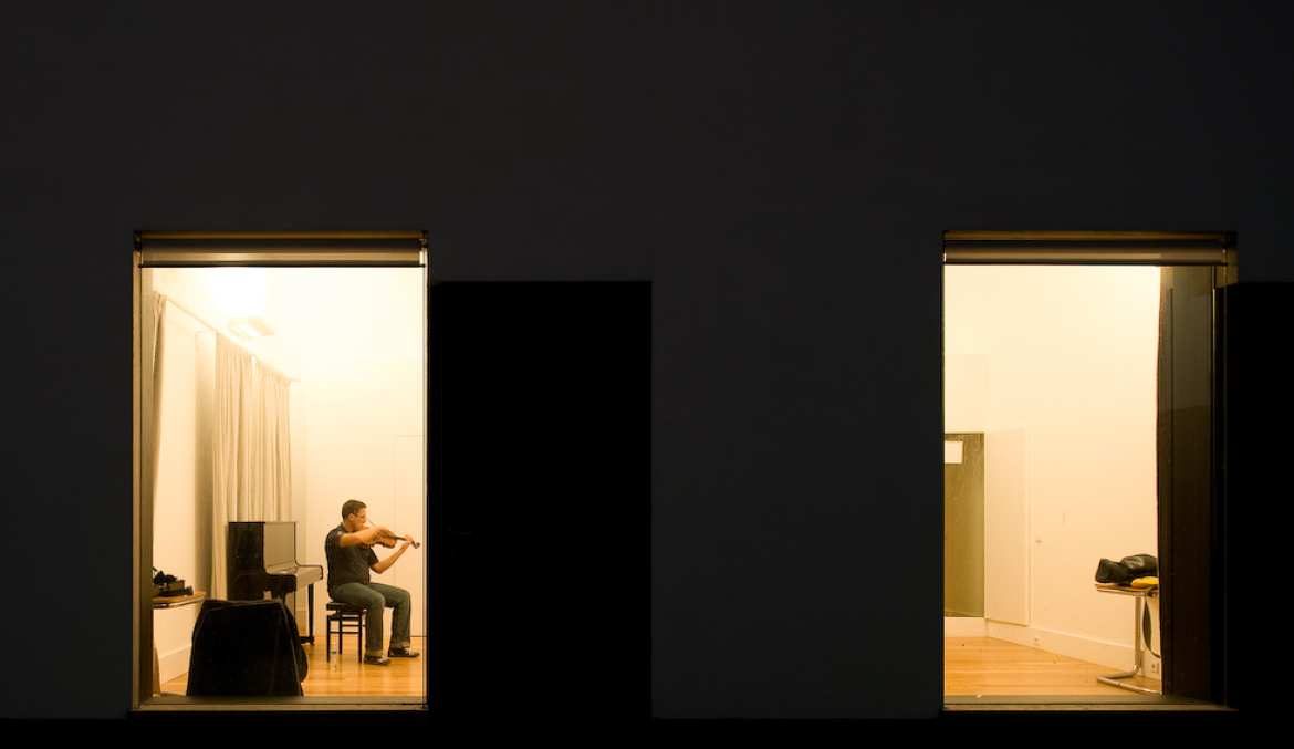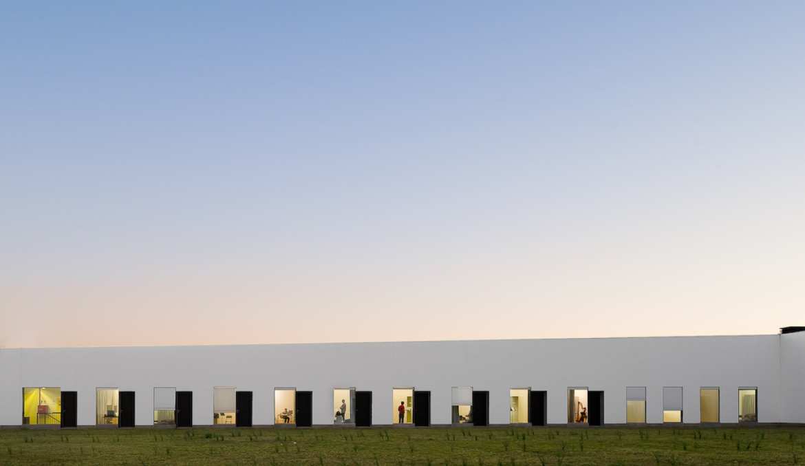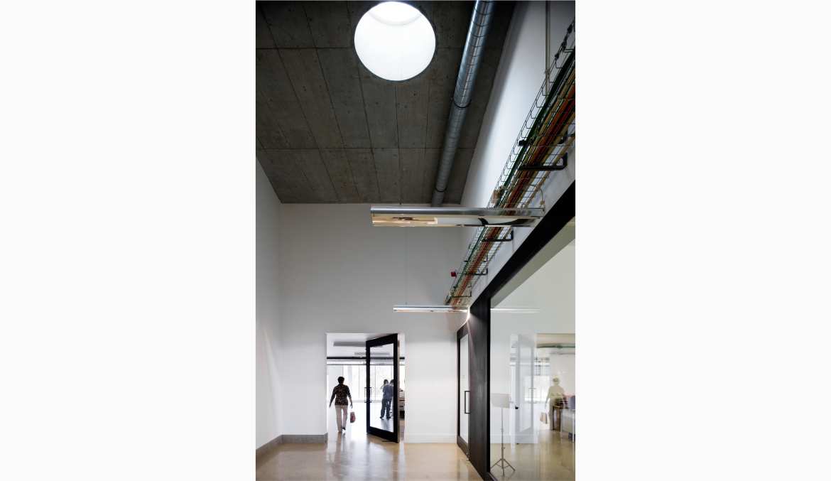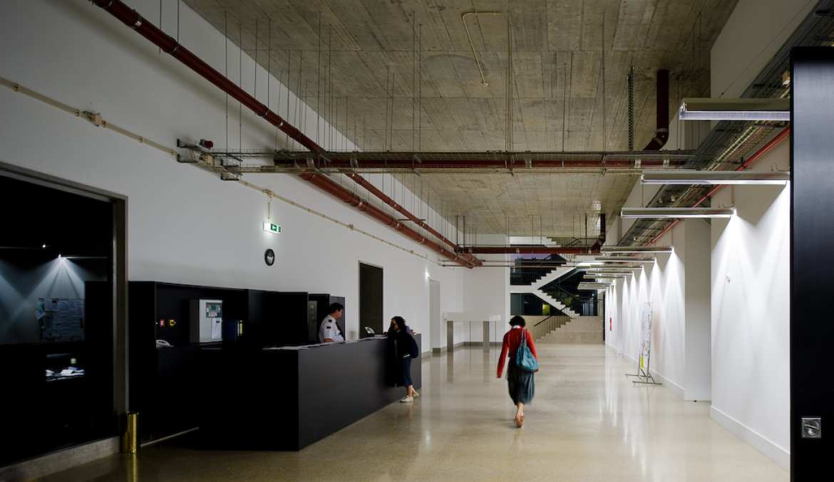 the building is organised around a large cloister plateau located in the university campus, providing an outdoor area where small concerts are improvised. to deal with the aggression of the acoustic environment, the building was studied to protect the school from noise due to its strong presence in the urban context. the north side of the volume is arranged in two levels, to provide an acoustic barrier to the cloister, while allowing for outdoor classes in the sun. the slope in the roof allows the creation of spaces of varying height, taking into account the particular specificities of each musical instrument. the school is organised in a spiral of strong dynamic impulse, which opposes the serenity of the cloister.
